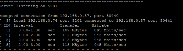아래와 같이 평균 900 Mbits/sec가 나오는 걸 확인할 수 있습니다.